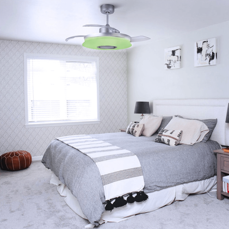 Este ventilador apresenta um altifalante para reproduzir música via Bluetooth, acompanhado por um motor DC silencioso com seis velocidades de rotação e iluminação LED 35W RGB com três temperaturas de cor que variam entre 3000ºK, 4000ºK e 6000ºK. Com estas características, cria atmosferas únicas ao brincar com os seus 2500 lúmenes. Tem também um sistema de controlo do fluxo de ar para proporcionar uma maior sensação de conforto, tanto no Verão como no Inverno. Tem um nível de estanqueidade IP20.