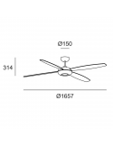 Produz um fluxo de ar de 5500 CFM e graças às suas dimensões torna o ventilador Kudari um produto perfeito para salas grandes, pelo que é recomendado para instalação em salas como cozinhas, salas de estar, quartos de dormir. Este dispositivo é garantido por 5 anos.