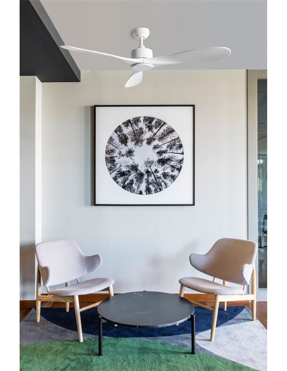 Ventoinha LUZON DC branco, Ø132 cm , sem luz, com controle inteligente WIZ , motor DC silencioso, 6 velocidades, função inversa e timer. Ideal para ambientes médios.