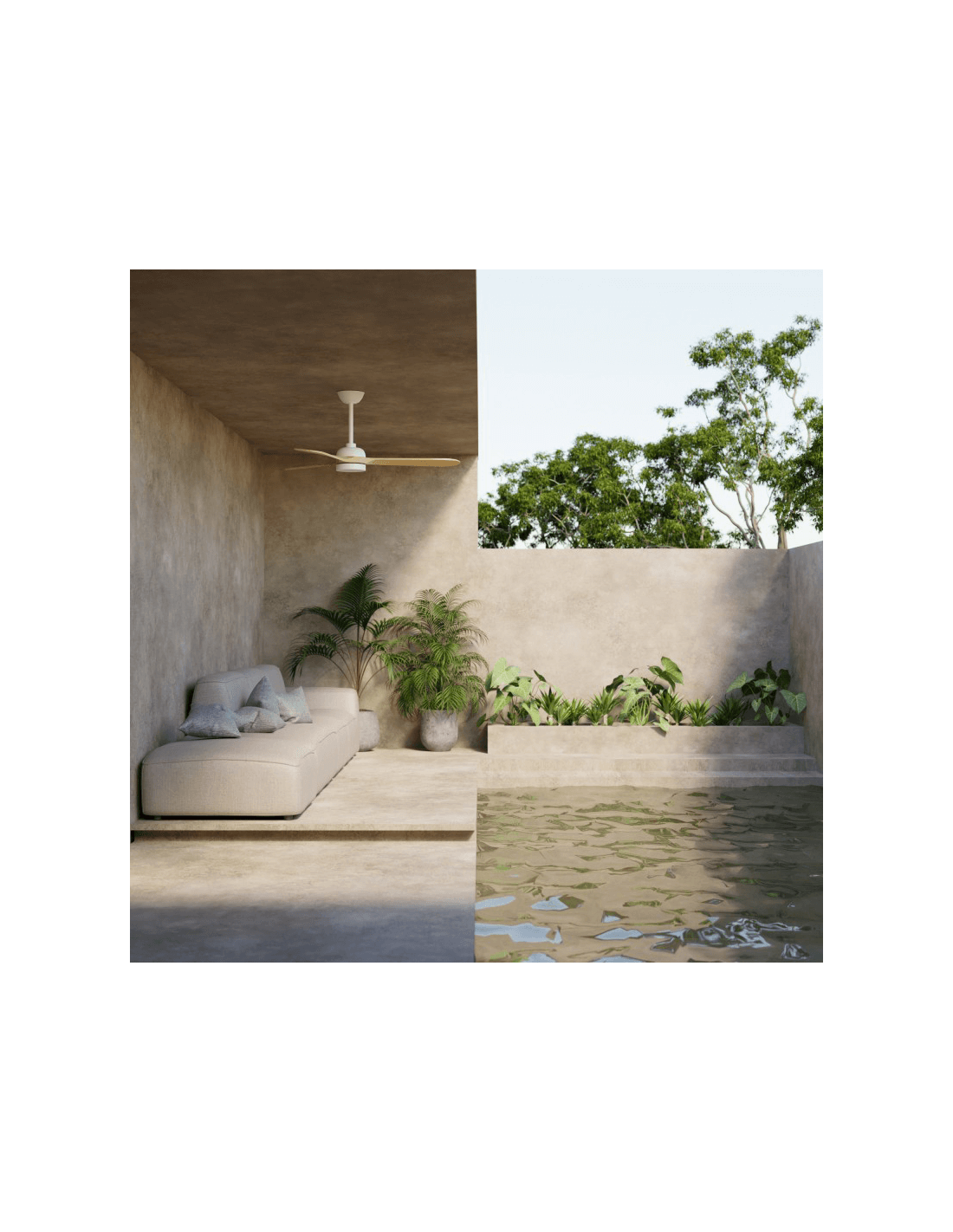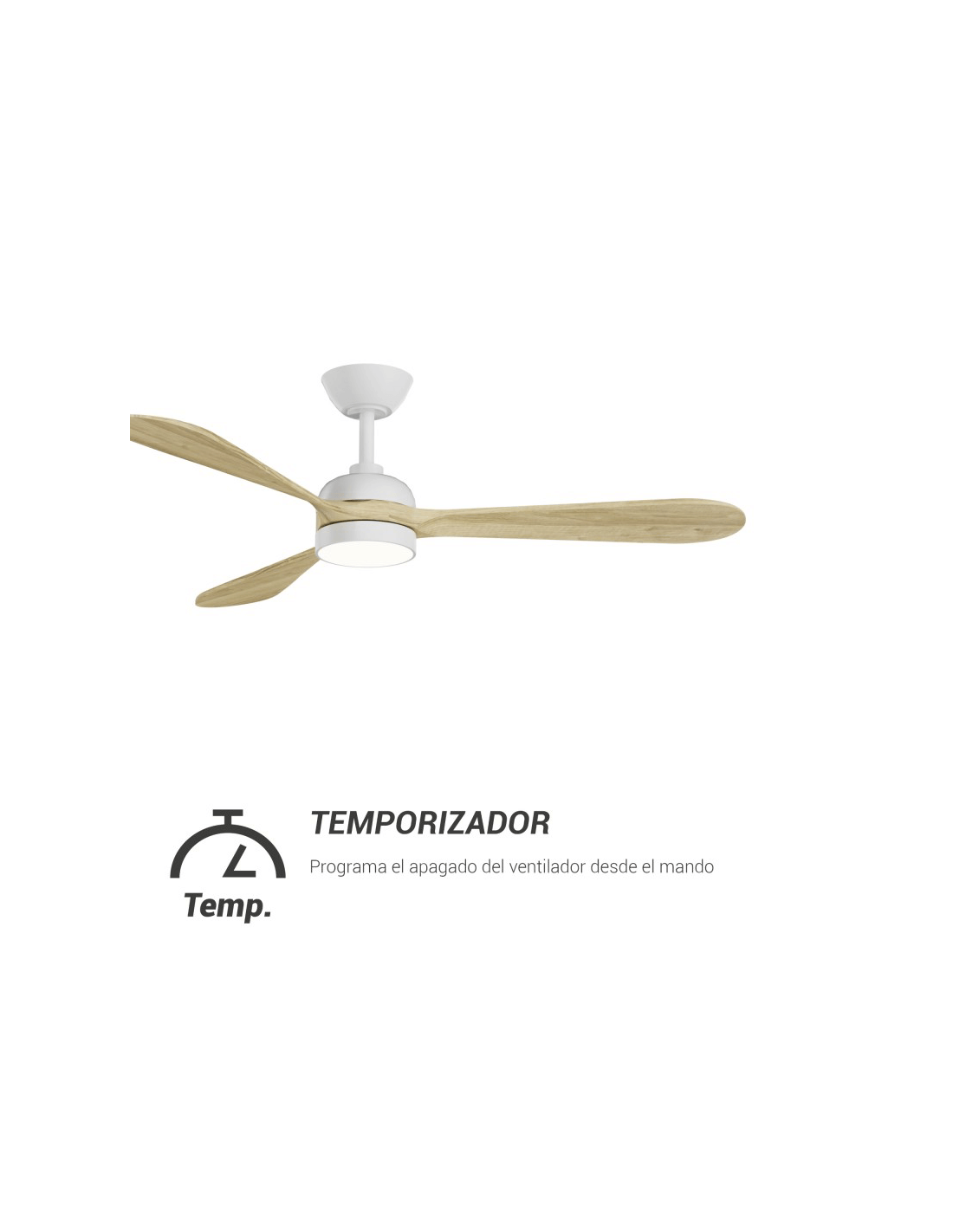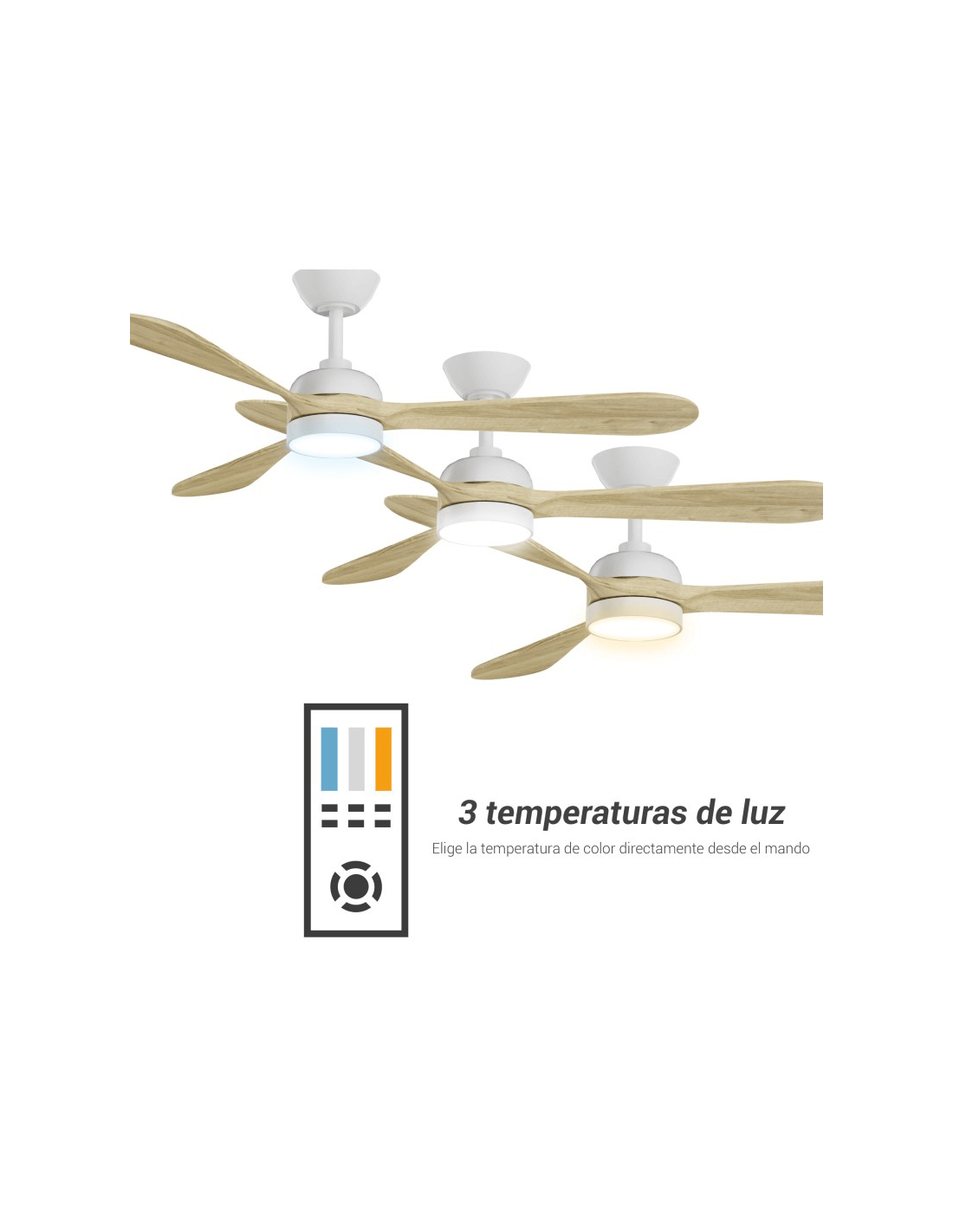 Ventoinha de teto de LED Nepal Faia e branco 75W e motor de ventilação de 60W