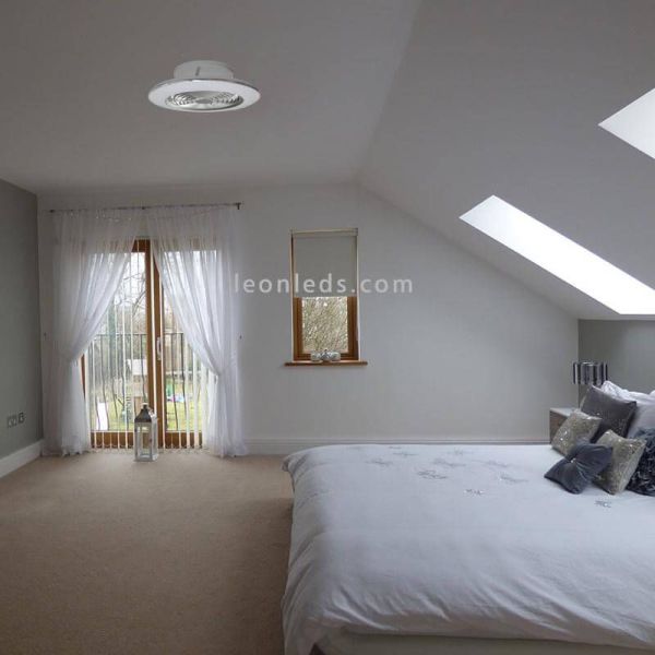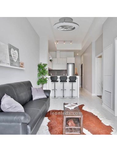 O Ventilador teto LED Alisio Mini silverware Mantra é perfeito para instalar em 15m2 quartos, é um ventilador S-size e sua instalação só pode ser instalada como tem um IP20. Pode ser instalado no telhado inclinado e na parede como Aplicar e tem função reversa, podemos usá-lo durante todo o ano, no verão e no inverno.