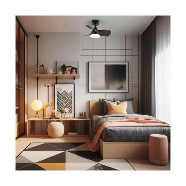 O Ventilador de Teto Mini LED BYAN possui um design moderno e elegante que combina perfeitamente com qualquer decoração. Seu acabamento em preto e madeira o torna um elemento decorativo que dará um toque de sofisticação à sua casa.