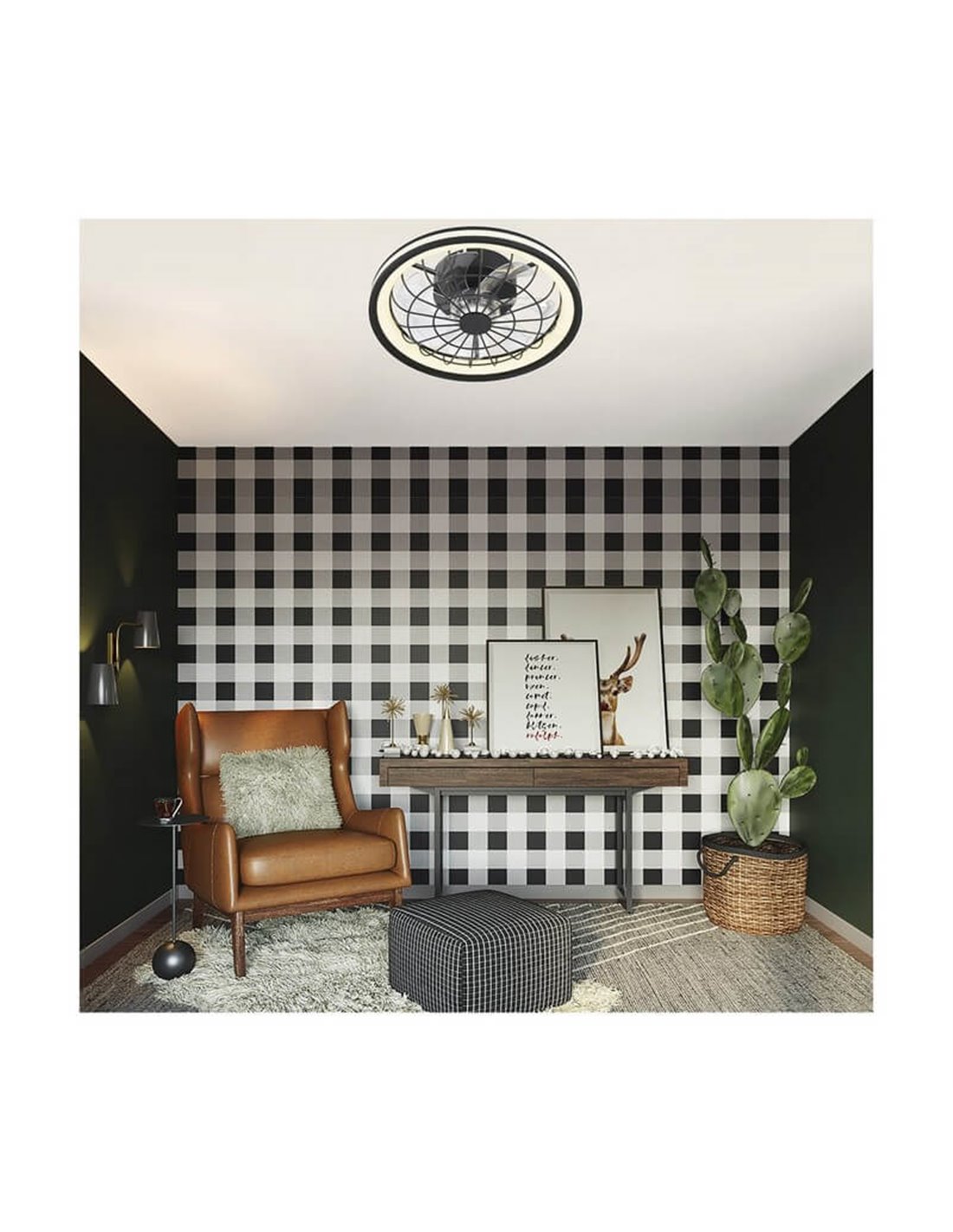 Equilíbrio entre estilo e funcionalidade: Nosso ventilador de teto RAFALE oferece uma solução moderna e eficiente para quartos e cozinhas abertas. O seu design de grelha circular com lâminas integradas no seu interior proporciona uma estética única, enquanto a sua potência de 50W e 4800 lumens garantem uma iluminação adequada em qualquer espaço.