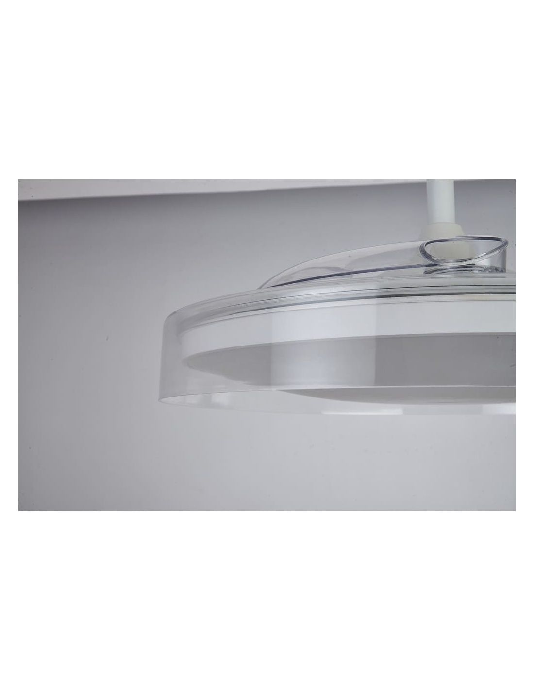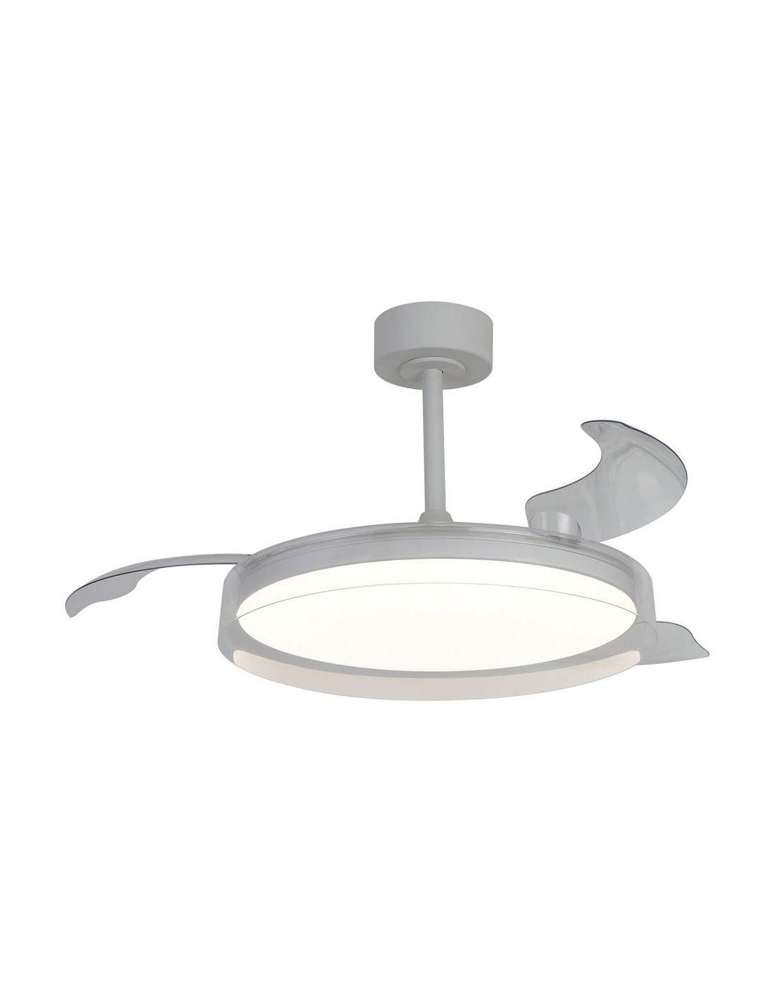 Ventoinha de teto com pás transparentes GLASS FAN M branco, silencioso e moderno