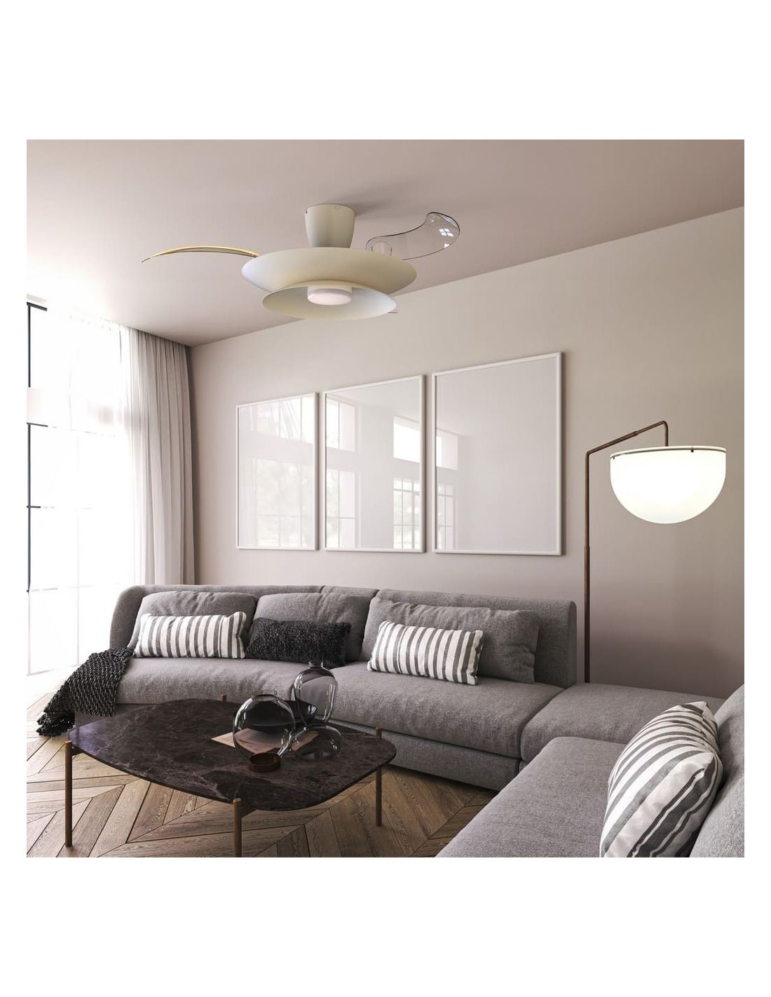 Ventoinha de teto PATAGONIA 2D branco com luz LED, modelo silencioso.