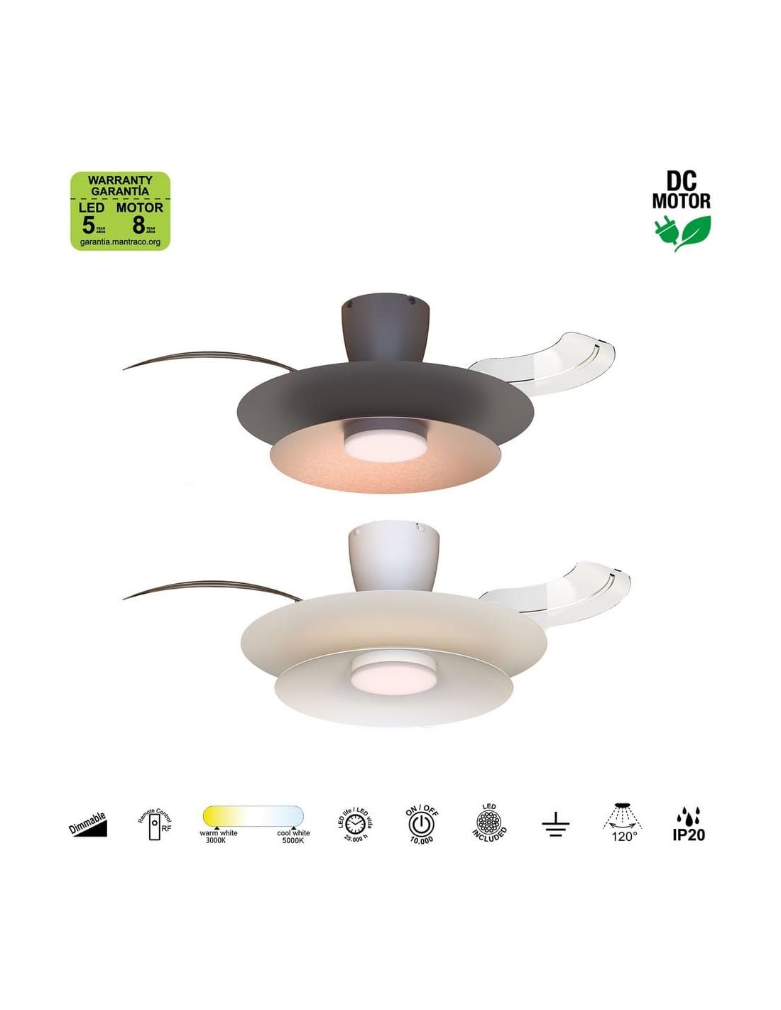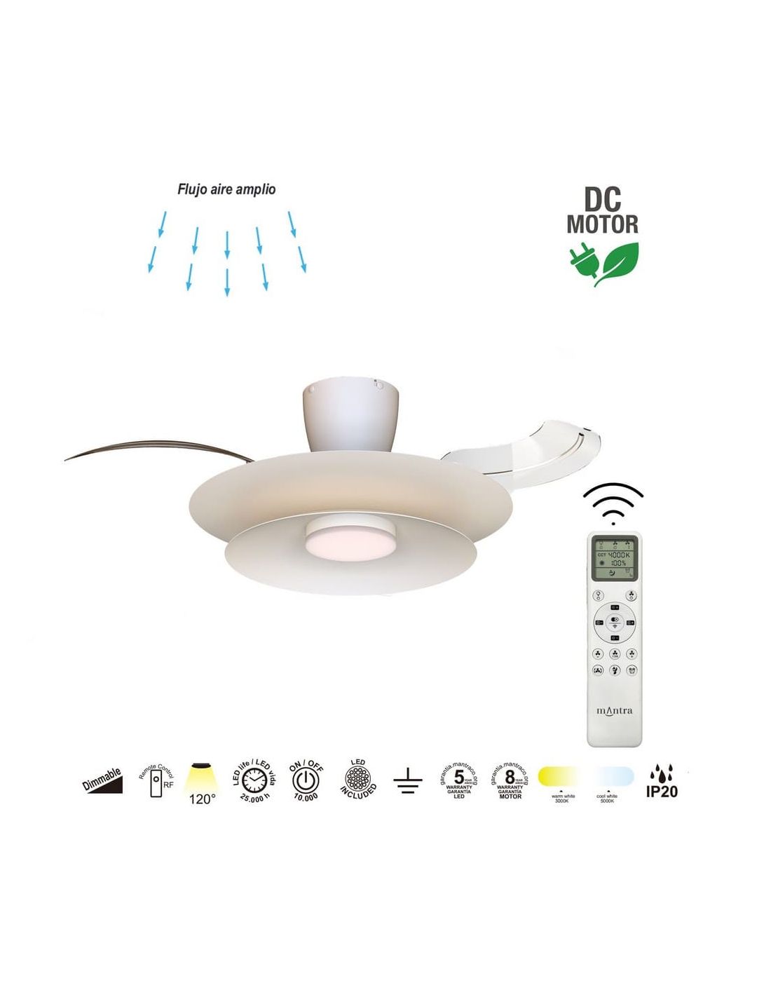 - Mantra - Ventoinha de teto silencioso PATAGONIA 2D com LED branco | LeonLeds