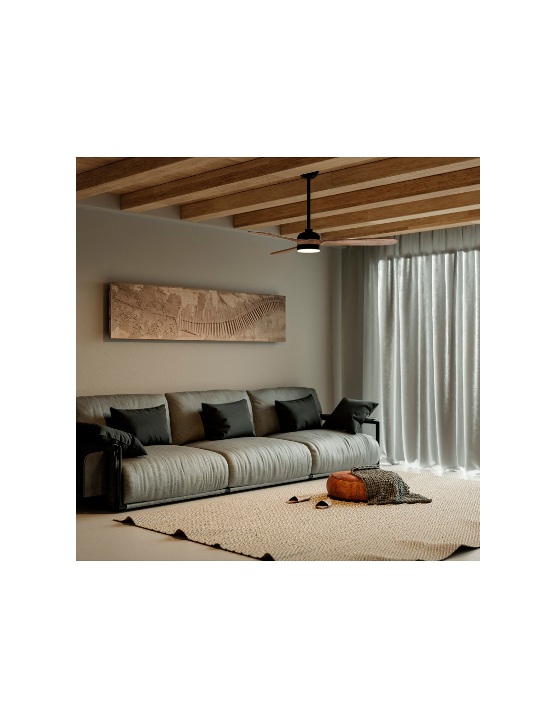 Este ventilador Tonda é feito de metal com acabamento em preto com três pás de madeira em acabamento natural, que irão adicionar um toque de estilo a qualquer sala, terraço ou jardim . Pode ser instalado tanto em ambientes internos quanto externos graças ao seu índice de proteção IP44 .