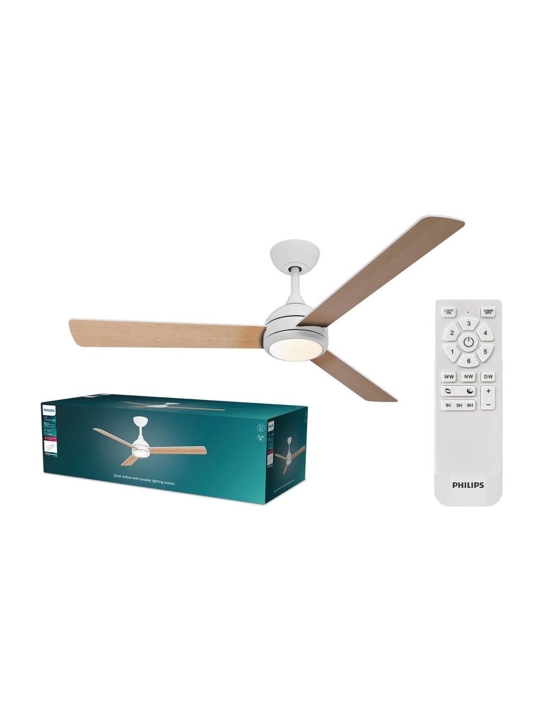Ventoinha de teto LED 52", OLAS 35W+24W, branco com pás largas de madeira, com controle...