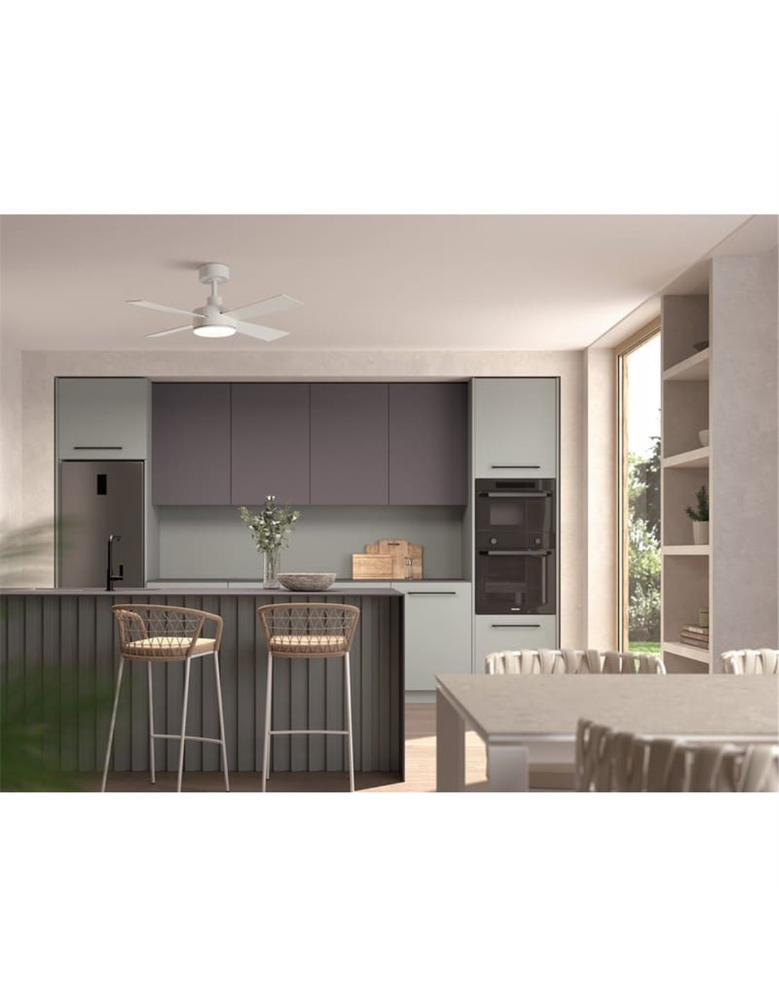 Graças às suas pás reversíveis e ao seu tamanho médio, o ventilador TASOS branco adapta-se a diferentes ambientes e decorações. Melhora a circulação do ar no verão e auxilia na distribuição do calor no inverno, otimizando o conforto durante todo o ano.