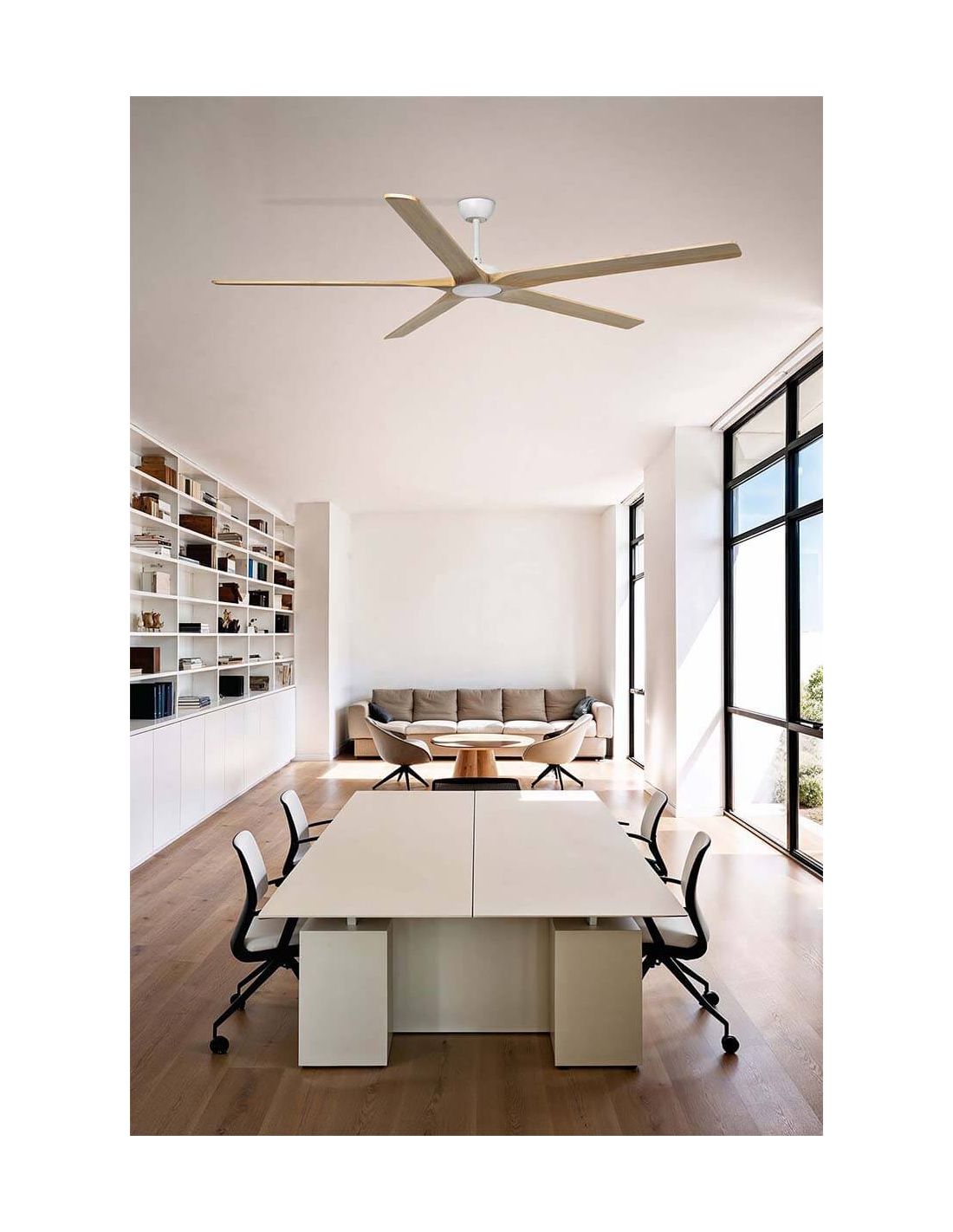 O ventilador de teto BIGWOOD 20 XL em branco e nogueira é a opção perfeita para quem procura um ventilador grande, potente, eficiente e decorativo para climatizar grandes espaços naturalmente.