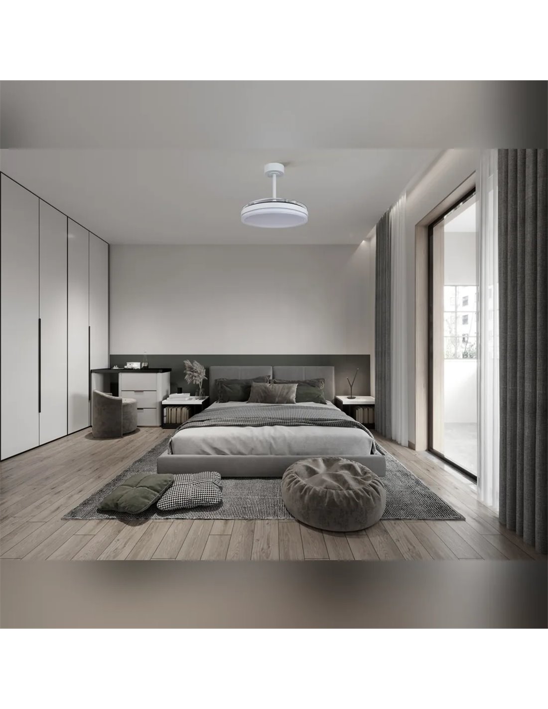 Ventoinha LUNA M com LED branco, pás retráteis e potência aumentada.
