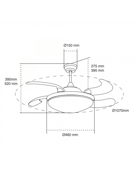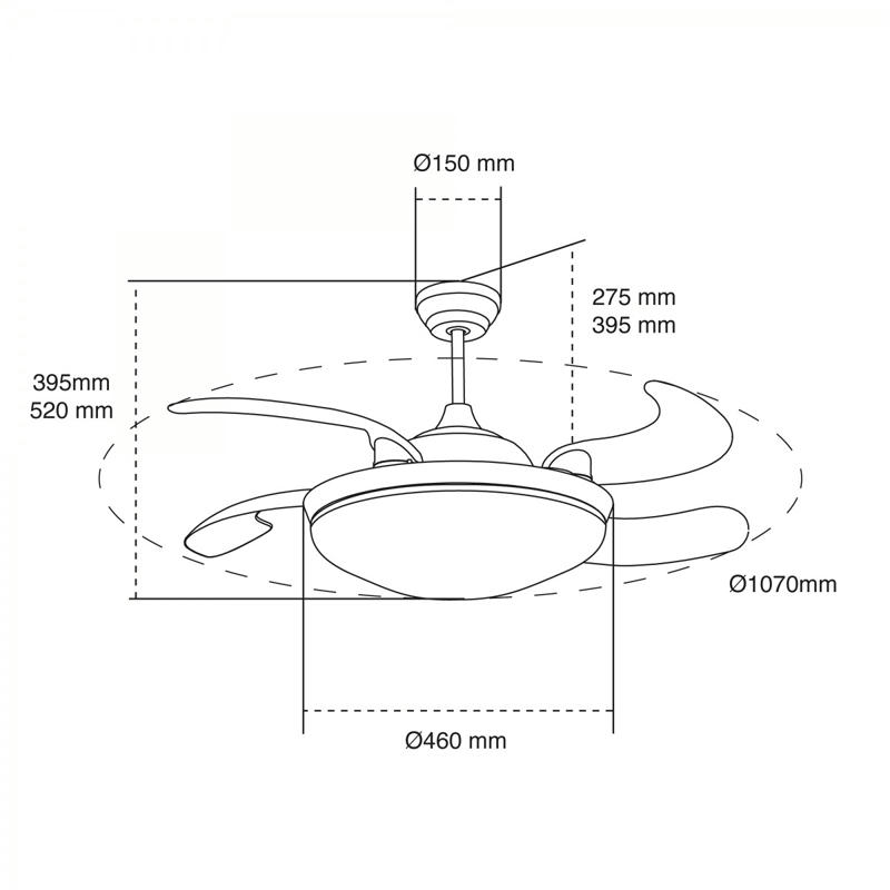 As lâminas deste ventilador são transparentes e retrácteis, o que permite que sejam escondidas para ganharem em elegância enquanto o ventilador não estiver em funcionamento. Também pode ser instalado em tectos inclinados, com uma inclinação máxima de 15º, o que se adapta a praticamente qualquer casa.