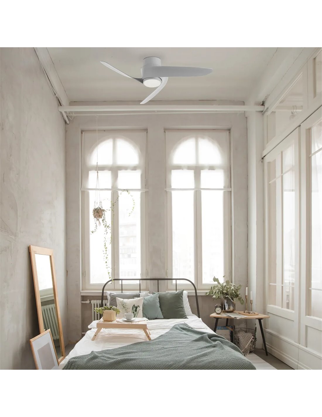 Ventoinha LED GROENLAND S, Madeira Branca Ø102cm DC 24W 1700lm CCT 2700K-5000K com...