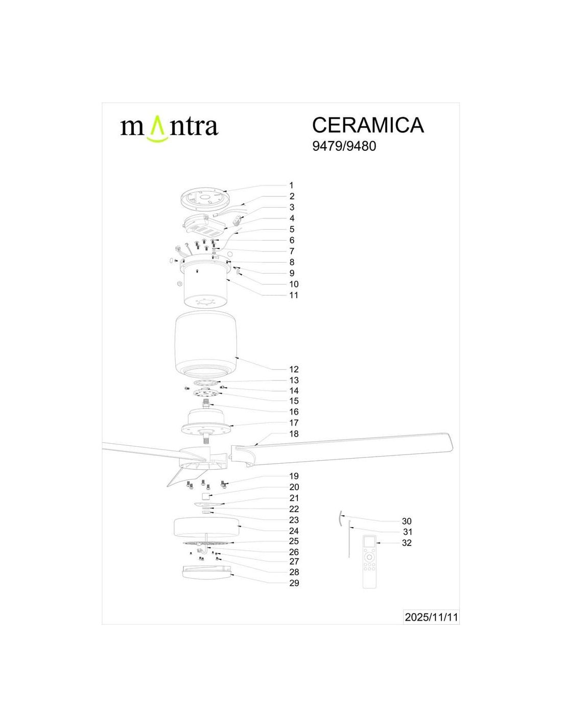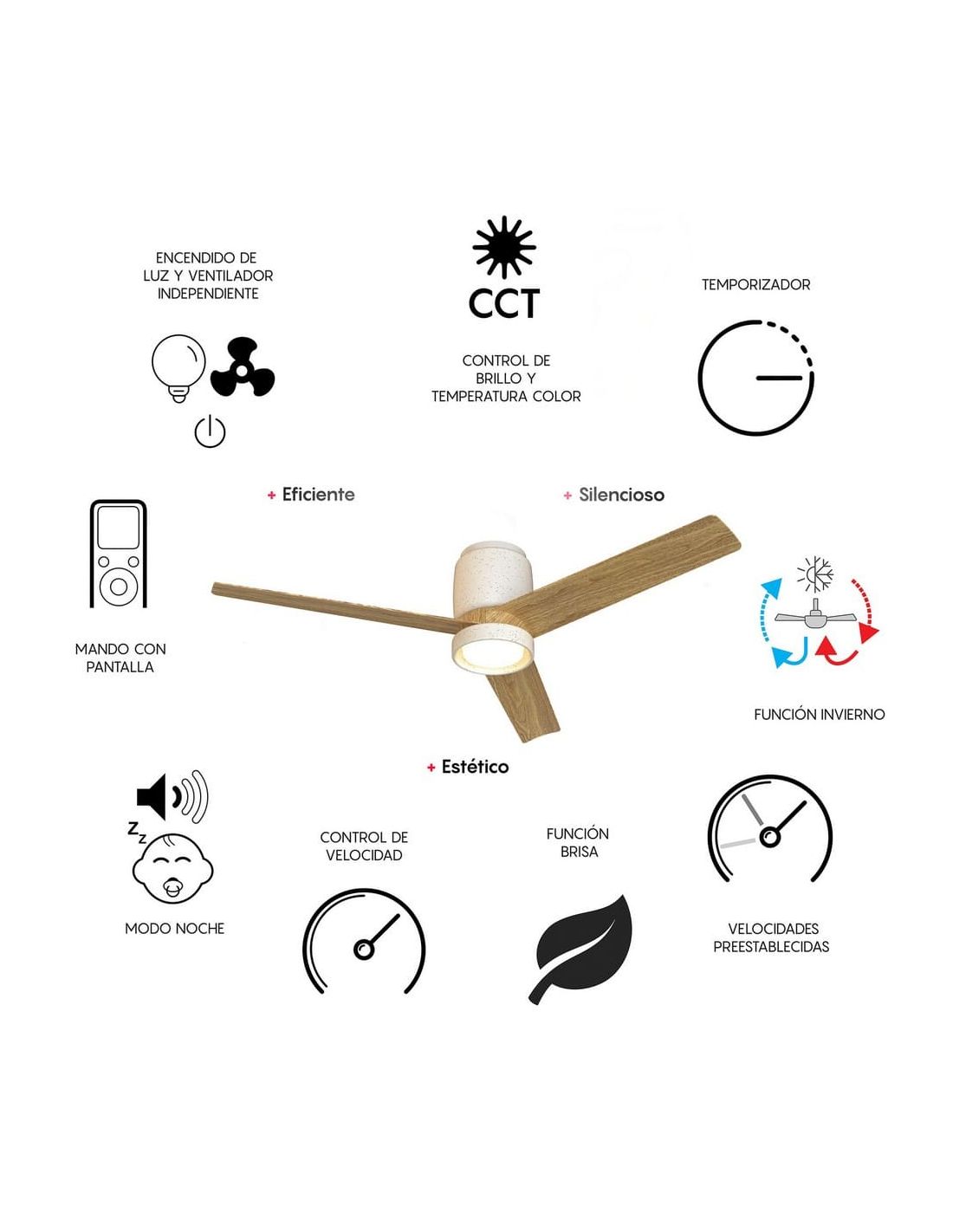 Ventoinha de teto plafon LED ONA branco madeira Ø700mm 18W 2520lm CCT 3000-5000K motor DC