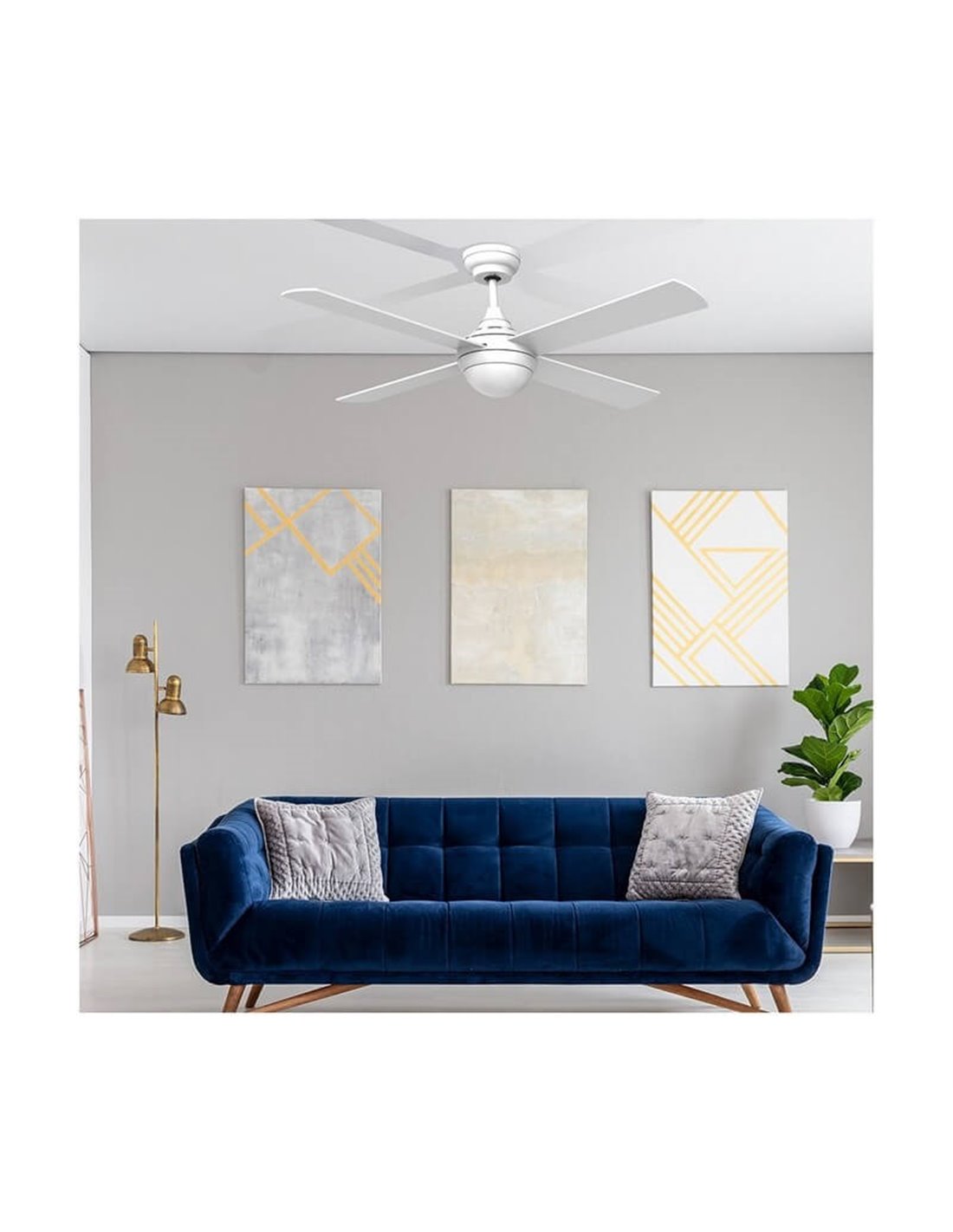 O moderno ventilador LED TEMPO na cor branca combina estilo e eficiência para salas grandes. Com tecnologia LED de 23 W e CCT ajustável, oferece iluminação versátil e fluxo de ar ideal, perfeito para qualquer casa moderna.