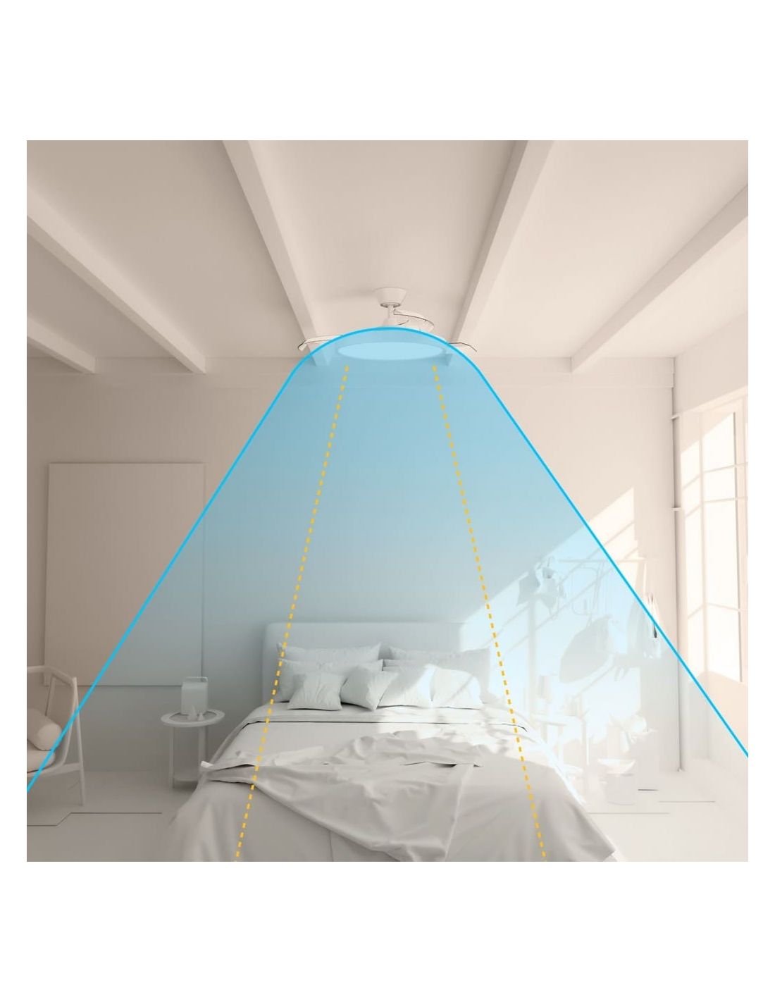 O EMMA S é a escolha ideal se procura um ventoinha moderno, eficiente e elegante com iluminação LED ajustável . Perfeito para aumentar o conforto em divisões de tamanho médio graças ao seu design sofisticado.