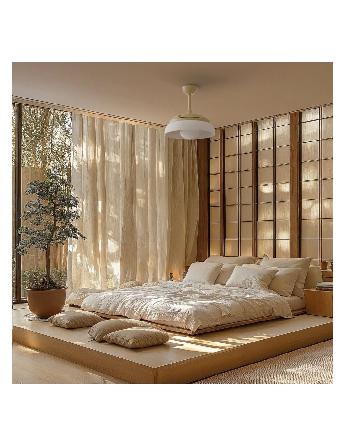 O ventoinha de teto EMMA S LED é uma solução versátil e elegante para refrescar e iluminar ambientes de tamanho médio. Seu sistema de pás retráteis proporciona uma estética minimalista, funcionando também como luminária de teto quando não estiver em uso.
