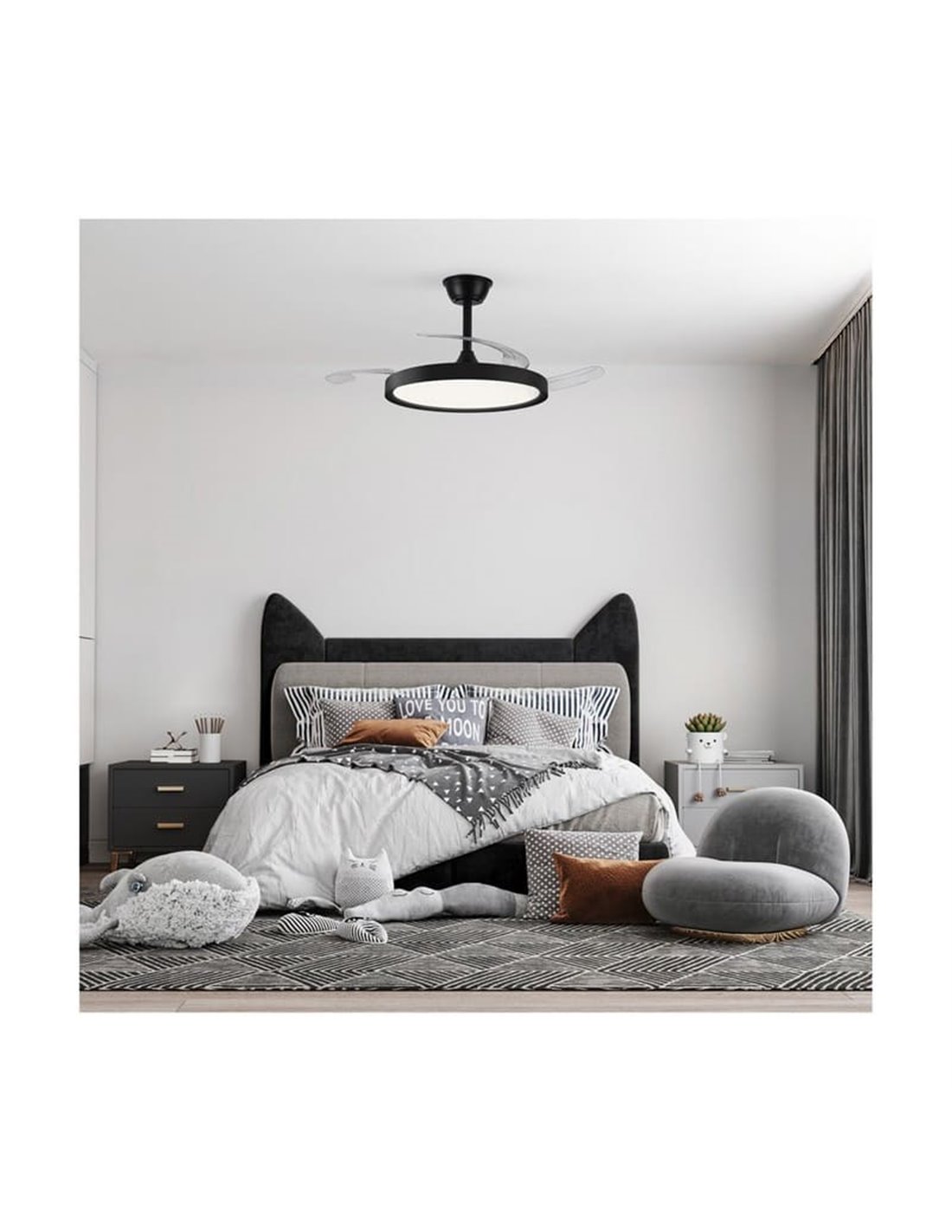 Ventilador de teto LED preto POLARIS com lâminas retráteis – Estilo e tecnologia