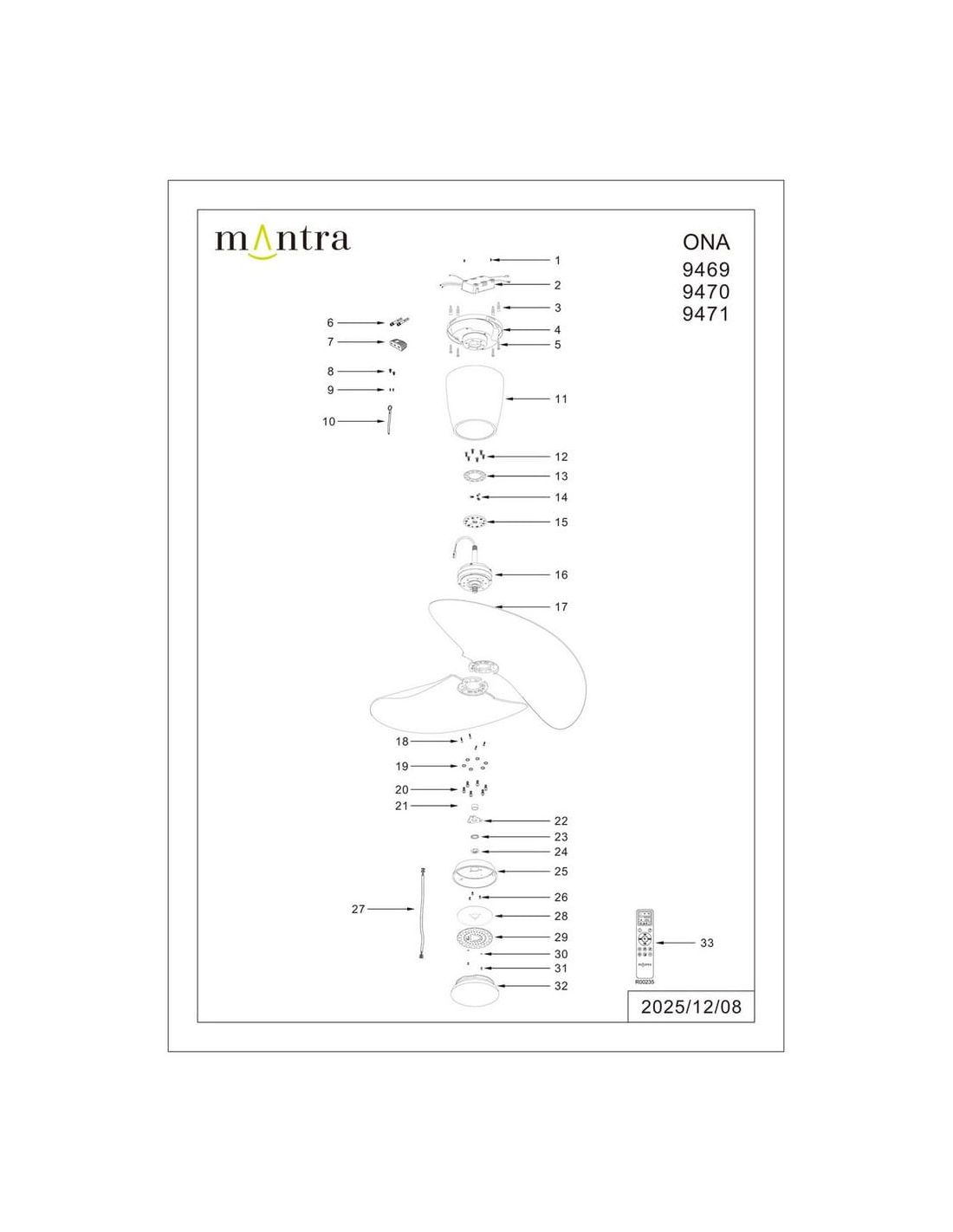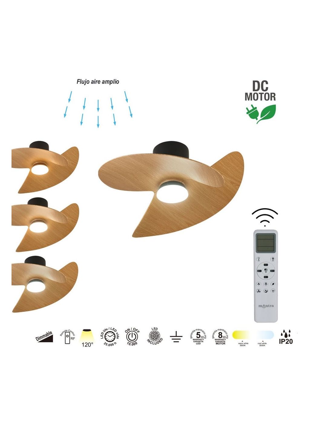 - Mantra - Ventoinha teto silencioso ONA em madeira preta com LED | LeonLeds