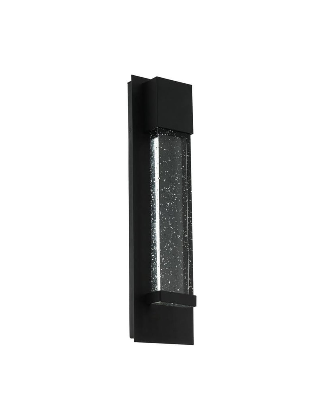 Aplique LED para exterior VILLAGRAZIA em preto, com abajur de vidro e bolhas de ar decorativas, com 30cm de comprimento. Perfeito para iluminar e decorar fachadas e terraços com um toque moderno e elegante.