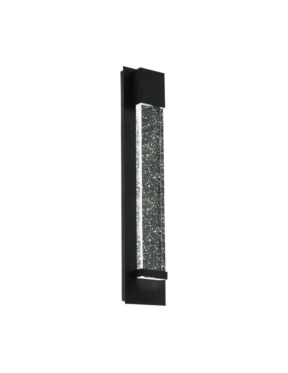 Aplique LED para exterior VILLAGRAZIA na cor preta, com abajur de vidro e bolhas de ar decorativas, com 40cm de comprimento. Perfeito para iluminar e decorar fachadas e terraços com um toque moderno e elegante.