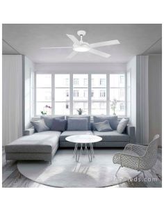 El ventilador de techo LED blanco de la serie Alisio de Mantra, se puede controlar con su mando a distancia, (Incluido) y mediante el móvil con una APP, cuenta con función noche y temporizador. Es un ventilador con 7 aspas fabricadas en ABS, su estructura metálica blanca esconde las palas de ABS. Este Ventilador incluye LED con una potencia de 70W, una intensidad de luz de 4.900Lm equivalente a 300W de una bombilla antigua, tanto la intensidad como la tonalidad de luz se puede regular mediante la APP y mediante el mando a distancia.